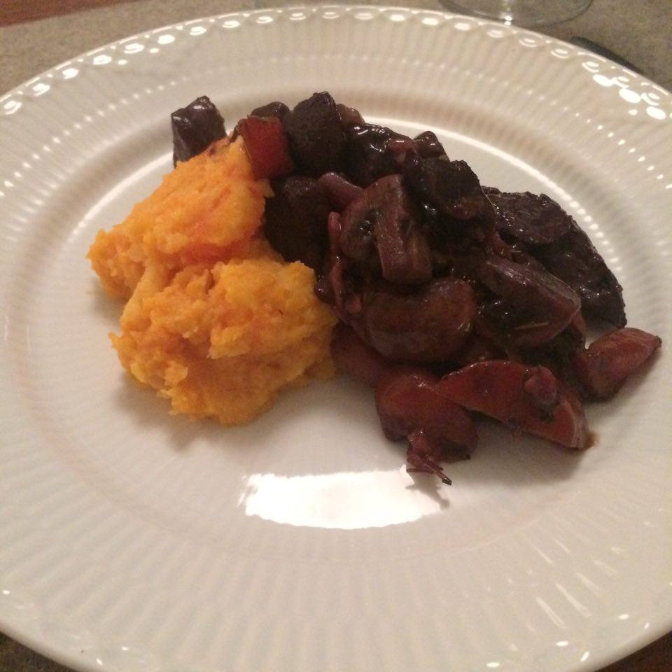 Boeuf Bourguignon med rodfrugtmos